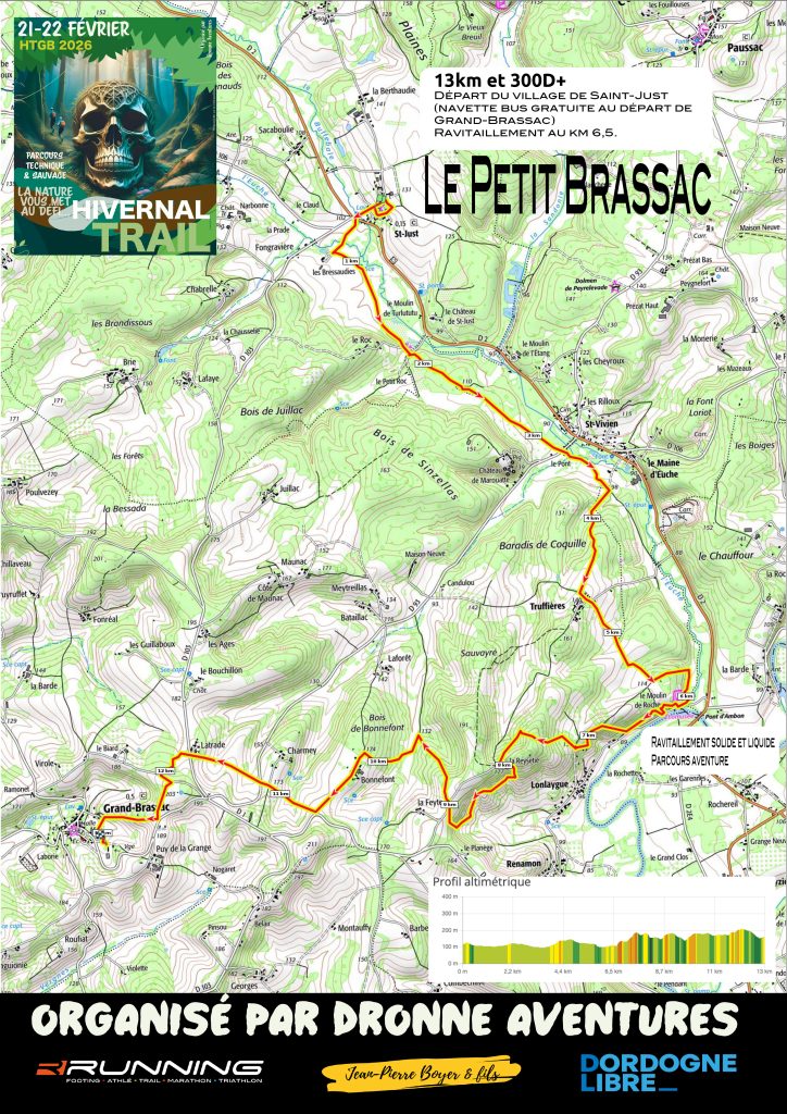 Les dossards seront à retirer à la salle des fêtes de Grand-Brassac le samedi 21 février à partir de 16h30 et le dimanche 22 à partir de 8h00.